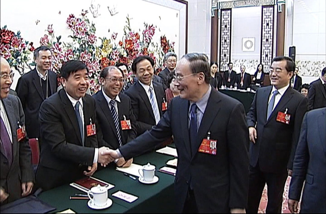時(shí)任中央政治局常委、中央紀(jì)委書(shū)記王岐山與楊建忠董事長(zhǎng)親切握手